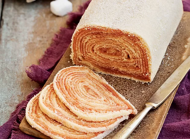 Patrimônio cultural de Pernambuco, o bolo de rolo é feito com camadas finíssimas de massa enroladas com goiabada. A técnica exige paciência e precisão, tornando-o um doce sofisticado e muito apreciado.
