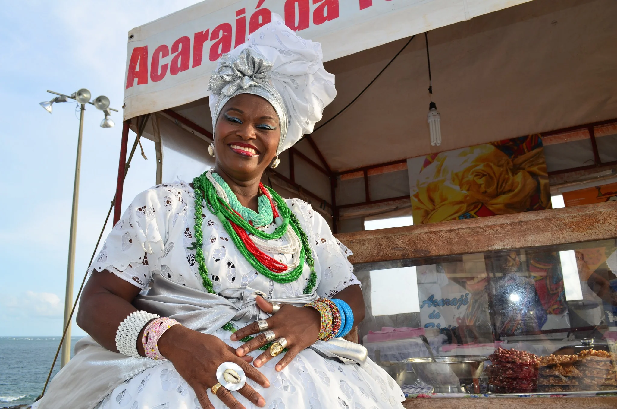 O acarajé é um dos maiores símbolos da culinária baiana. De origem africana, é preparado com massa de feijão-fradinho, cebola e sal, moldado em bolinhos e frito no azeite de dendê.